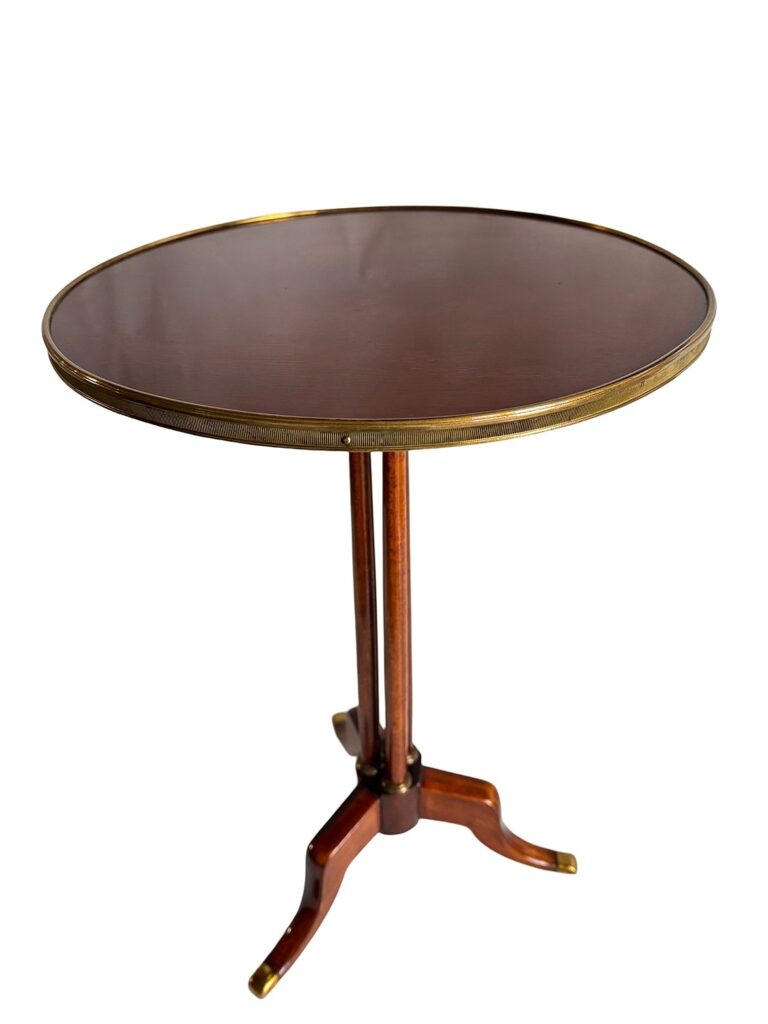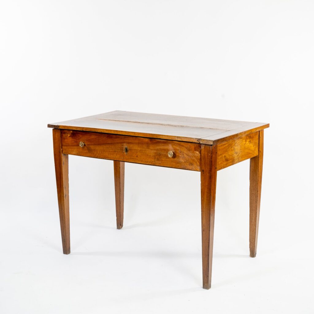 El elegante movimiento de su silueta, el cálido veteado del nogal y las patas cabriolé aportan dinamismo y ligereza al conjunto, fiel al refinamiento del gusto rococó nórdico del siglo XIX. Conserva su llave original.