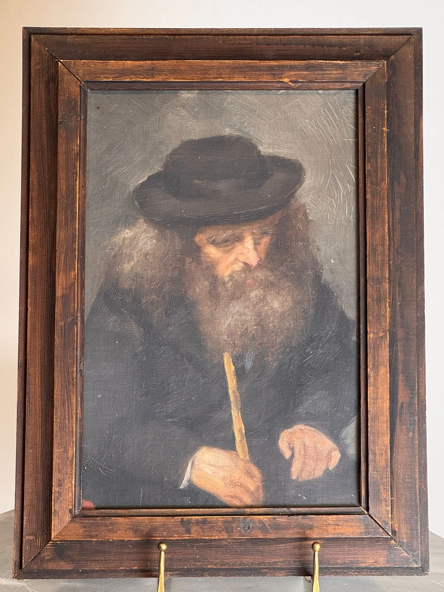 Óleo sobre tabla realizado por Ingrid Steffenburg, firmado y fechado en 1894. La obra representa un retrato masculino de medio cuerpo, mostrando a un hombre barbado, tocado con sombrero oscuro, concentrado en la acción de escribir o dibujar. La escena transmite una atmósfera introspectiva e íntima, resuelta mediante una paleta sobria y una iluminación contenida que enfatiza el carácter psicológico del personaje.