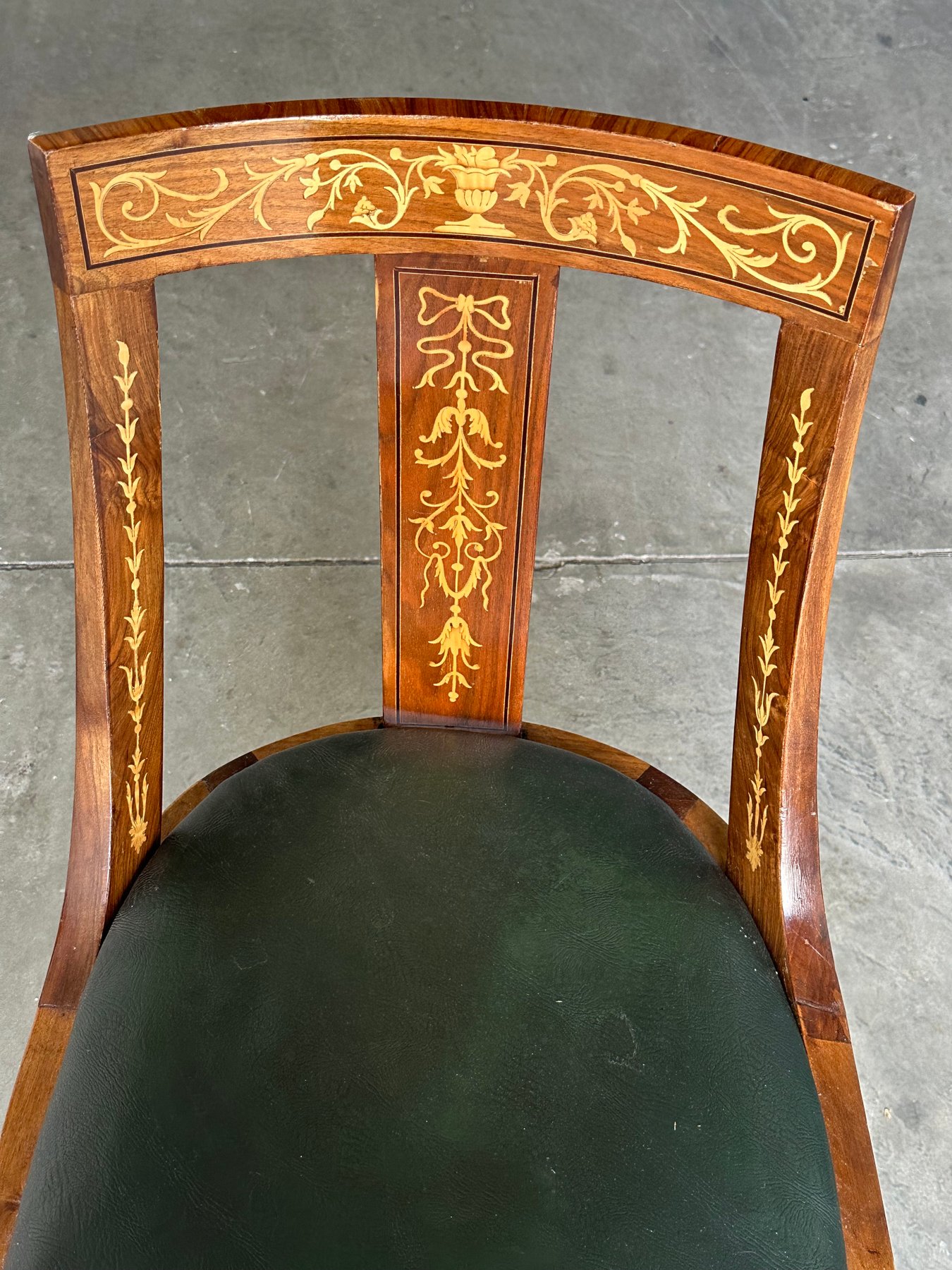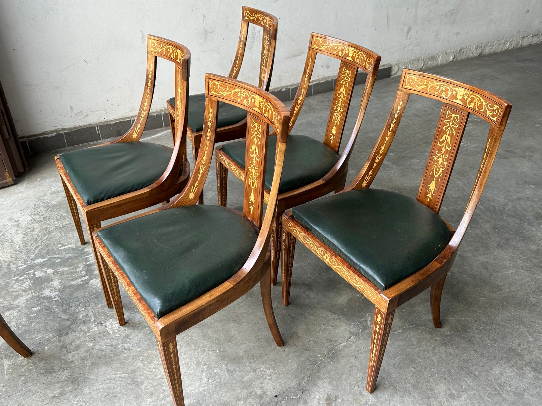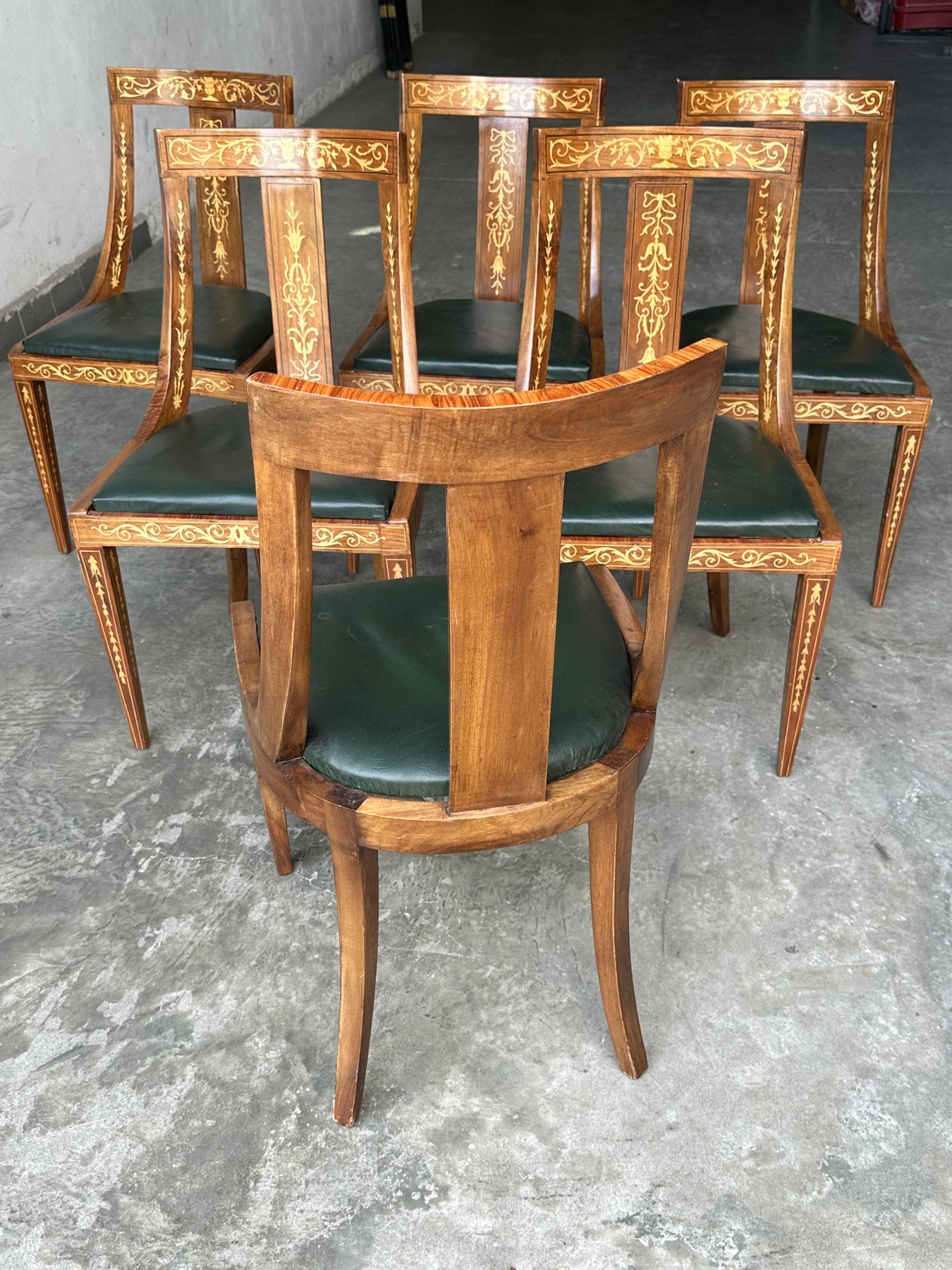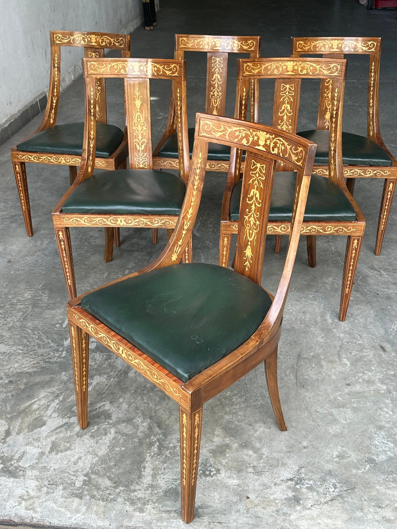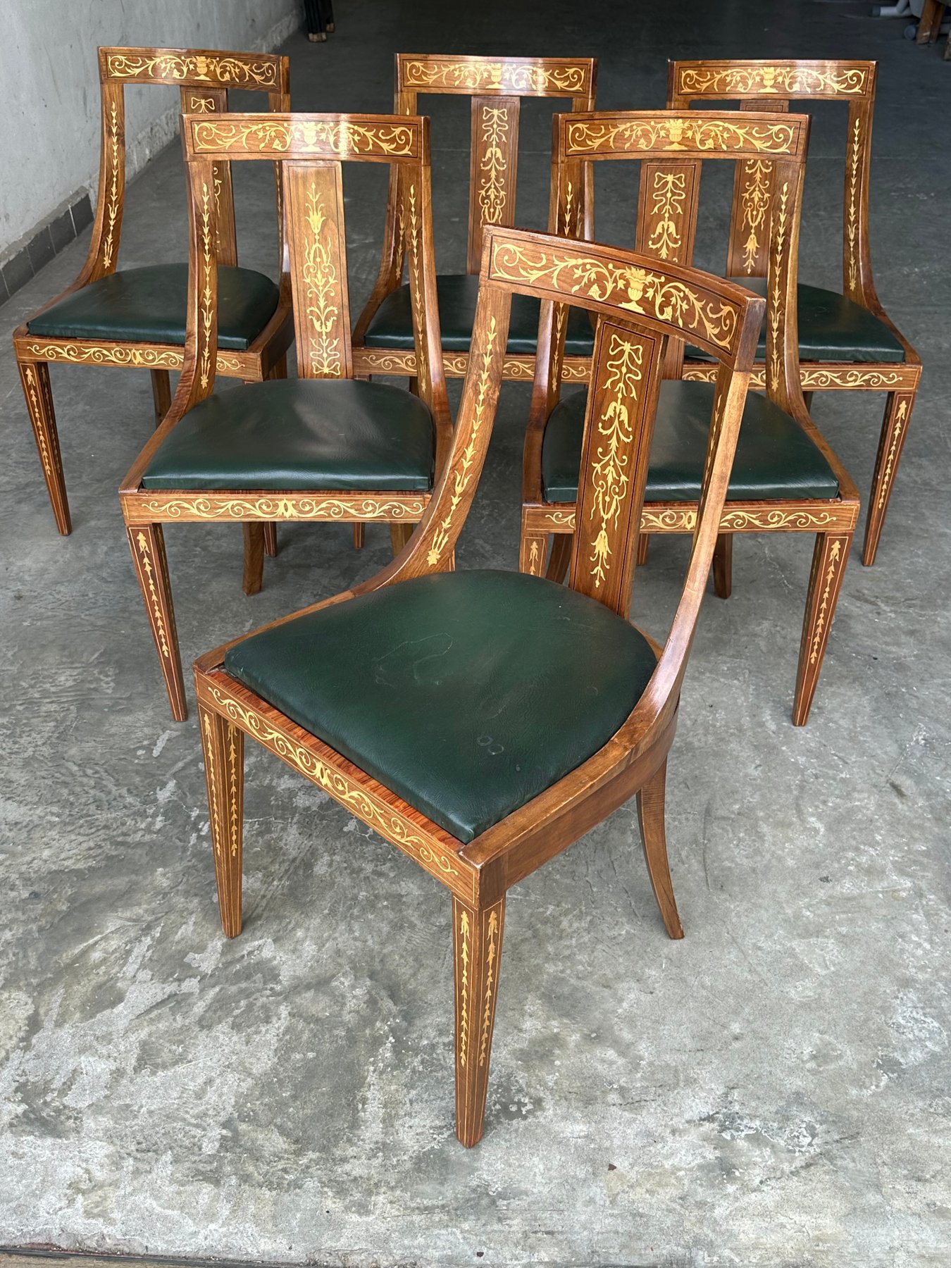 Conjunto de seis sillas con decoración en marquetería neoclásica